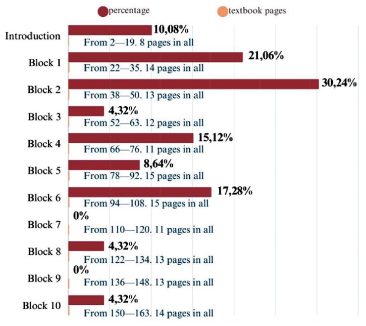 The frequency of the ideological component in thematic blocks in the textbook “Practical Translation Course” is presented in Fig. 5.