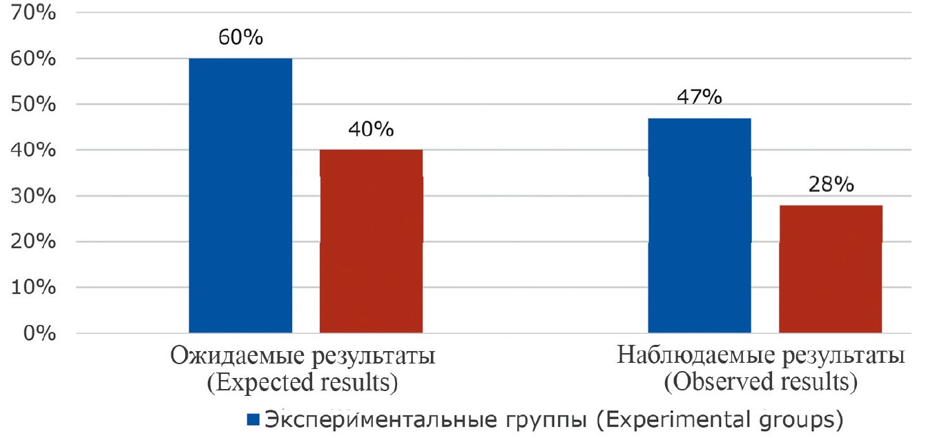 Достоверность полученных в ходе экспериментального обучения данных прошла проверку с помощью расчета критерия хи-квадрат Пирсона и P-значения[7], составившего для нашего эксперимента 0,04 (P-value < 0,05).