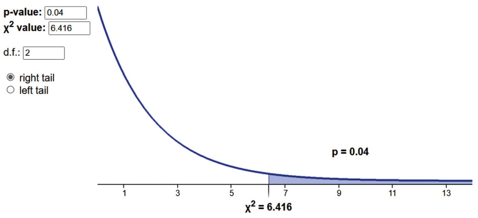 Figure 4. P-value based on the final tests results, obtained with the help of an automatic calculator: www.statdistributions.com