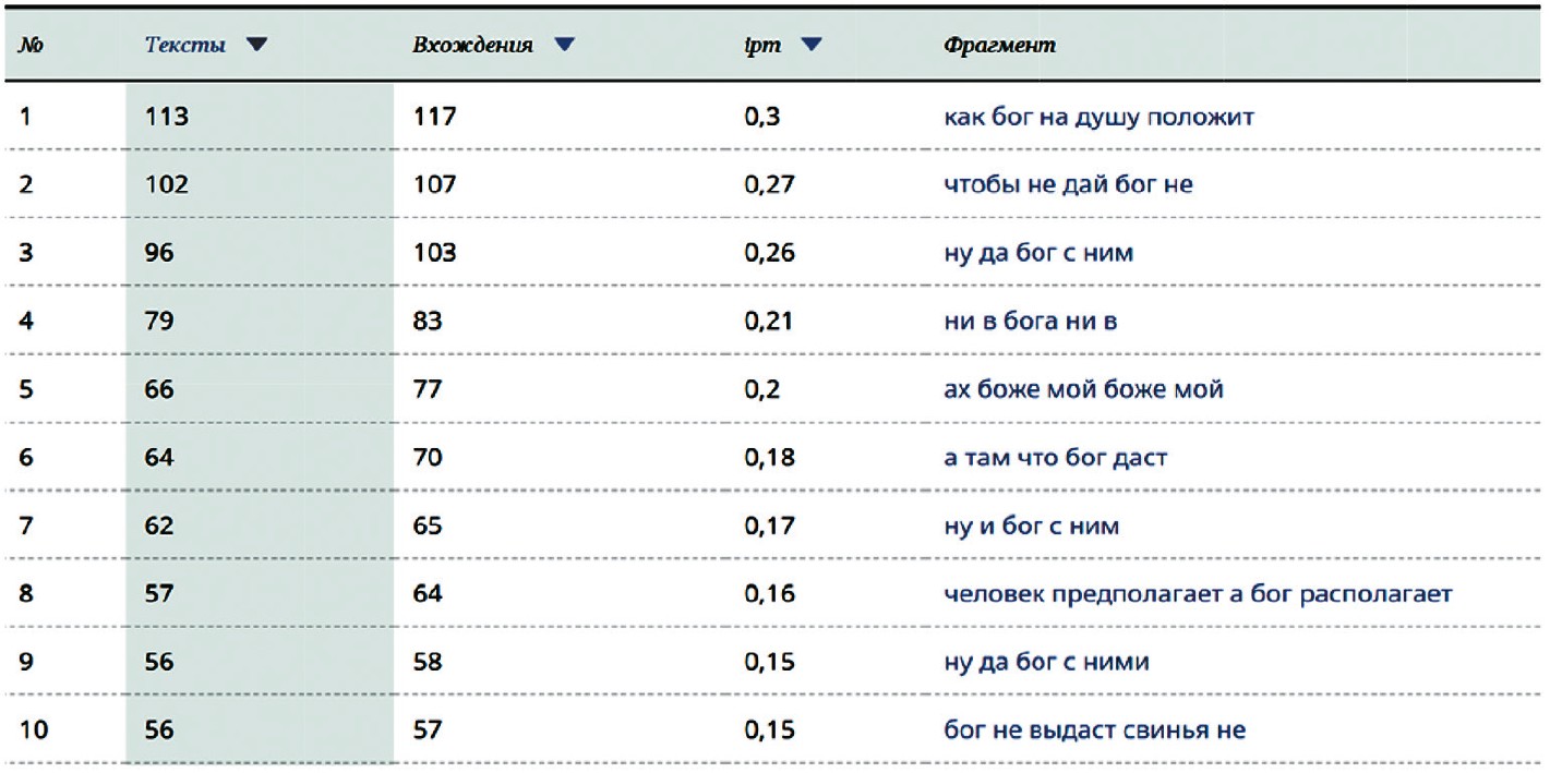 Рис. 3. Наиболее частотные выражения со словом Бог (5 компонентов)[16]