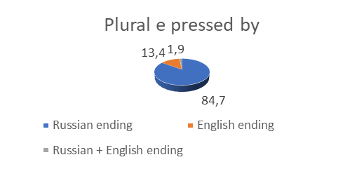 Further morphological features of Anglicisms in the Russian slang naturally copy general characteristics of individual word classes both in the Russian and English languages and at the same time, the features are overlapping while the traits of word classes from the Russian language emerge into the foreground. The fact illustrates the predominance of the Russian language over the borrowed words. It is necessary to take into account that we deal with typologically diverse languages — the English language — an analytical type of language; the Russian language — a synthetic inflectional type of language which are related languages neither from genetic or geographical point of view. In other words, Anglicisms with their features do not fit into the paradigms of the Russian language, but when entering its word stock they usually (but not always immediately and fully) adapt to its grammatical categories.