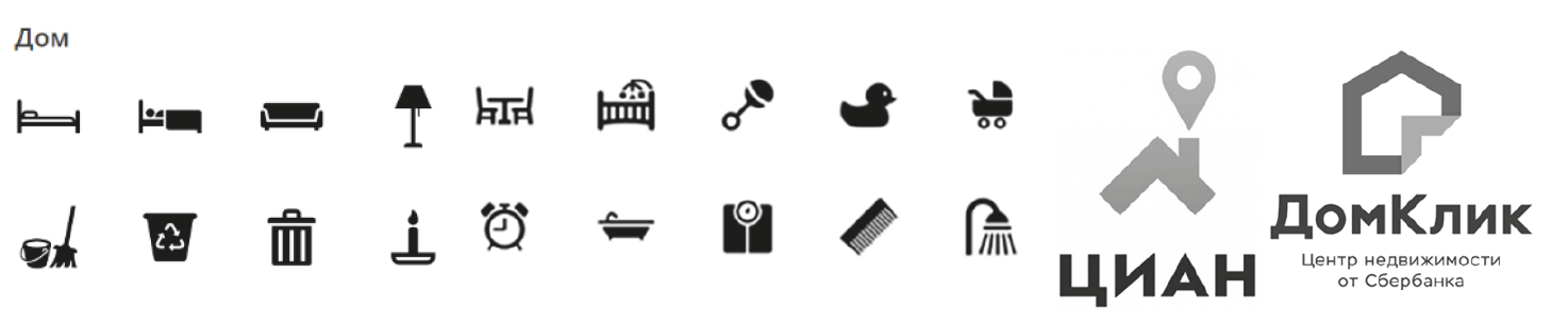 Рис. 2. Иконки концепта «дом» в Microsoft Word // ДомКлик-Сбер // Циан // Яндекс_Недвижимость