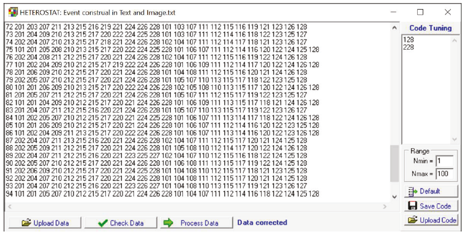 Рис. 4. Окно программы HETEROSTAT, обрабатывающей данные о конструировании событий