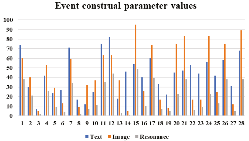 Fig. 6. Contrastive data on parameter values in text, image, and their resonance values