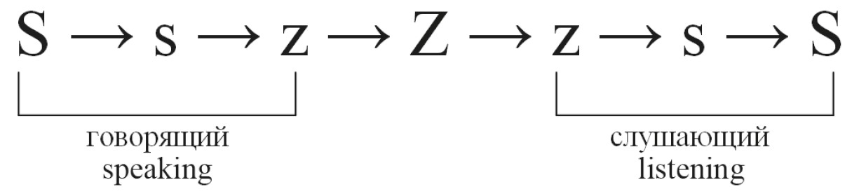 На изображении представлена цепочка переходов, где S — мыслительное содержание, сигнификат; S — языковое значение, Z — внутренний знак, психический образ физической (графической или звуковой) оболочки слова; Z — внешне воспринимаемый знак, улавливаемый органами чувств [2. С. 388–399]. Эта модель акта коммуникации не противоречит наблюдениям А.А. Залевской [14], И.А. Мельчука [15] и других. До определенной степени Л.А. Новиков теоретически описал фундаментальный принцип «воспроизводимости», базирующийся на стабильности переходов от порождения к пониманию знака.
