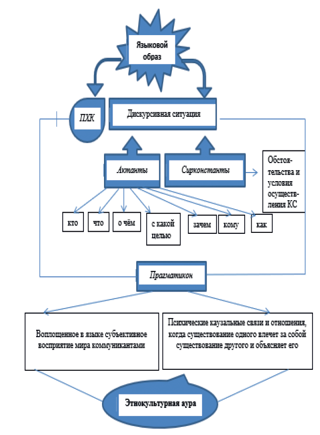 PLC being a nuclear element of a discursive situation performs within its framework the function of an associative connection of objects of thought. The discursive situation represents the corresponding communicative event (hereinafter referred to as CE) in its semantic correlation with the real “state of affairs” projecting an artistic world picture. Its artistic status is due to the pragmaticon [24] of the language image embodying in language the subjective perception of the world by the author, and then by the reader.