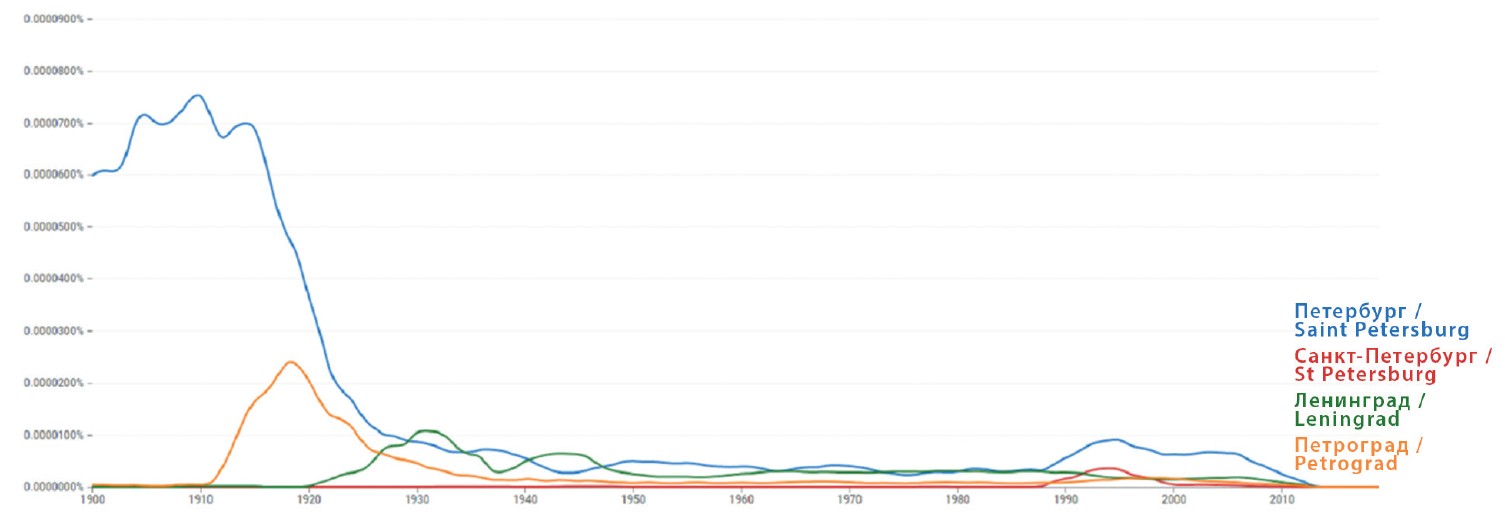 Объективация знаков конкретного географического места, выраженного в слове, «может быть орудием, с одной стороны, разложения, с другой — сгущения мысли единственно потому, что оно есть представление, то есть не образ, а образ образа» [10. C. 223] сложного узора Санкт-Петербурга — Петрополя — Петрограда — Ленинграда.