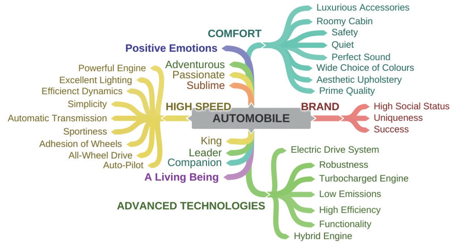 The thematic scope in automobile brochures included the exterior and interior qualities that characterize the powerful engine, upholstery, a wide choice of materials and colours, wheels, road adhesion, elegant design of the car body, craftsmanship of manufacture that distinguishes these automobile models from all other models and underlines their uniqueness. Actually, the high quality of the salon and innovative engine are represented through the anthropocentric view, expressed in terms of personal impressions such as perfection, luxury, exclusivity, exhilaration, the spirit of adventure, and other positive emotions (Fig. 3).