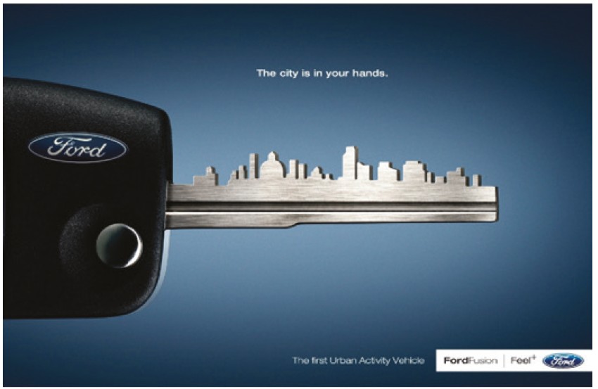 - Pragmatically, when you buy this Ford Fusion, you get a city. The Ford Fusion is urban, modern, powerful, full of possibilities, and it is all yours. You have this key; you hold it in your hand. The city is now yours. With this key, with this car “The city is in your hands”.