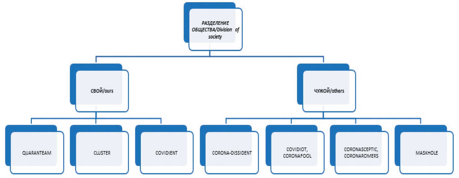 Значимой тенденцией в этикете периода пандемии стало нарушение прав отдельных категорий граждан, а именно представителей поколения бейби-бумеров, которым на тот момент было 65+ лет. Обратим внимание на то, что в западном обществе стала наблюдаться тенденция категоричного разделения на «своих» и «чужих», что подчеркивается типовыми неологизмами (см. рис. 3):