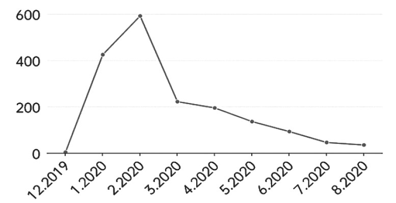 С 31 декабря 2019 г. по 31 августа 2020 г. ТАСС опубликовало 1739 сообщений об эпидемии коронавируса в Китае.