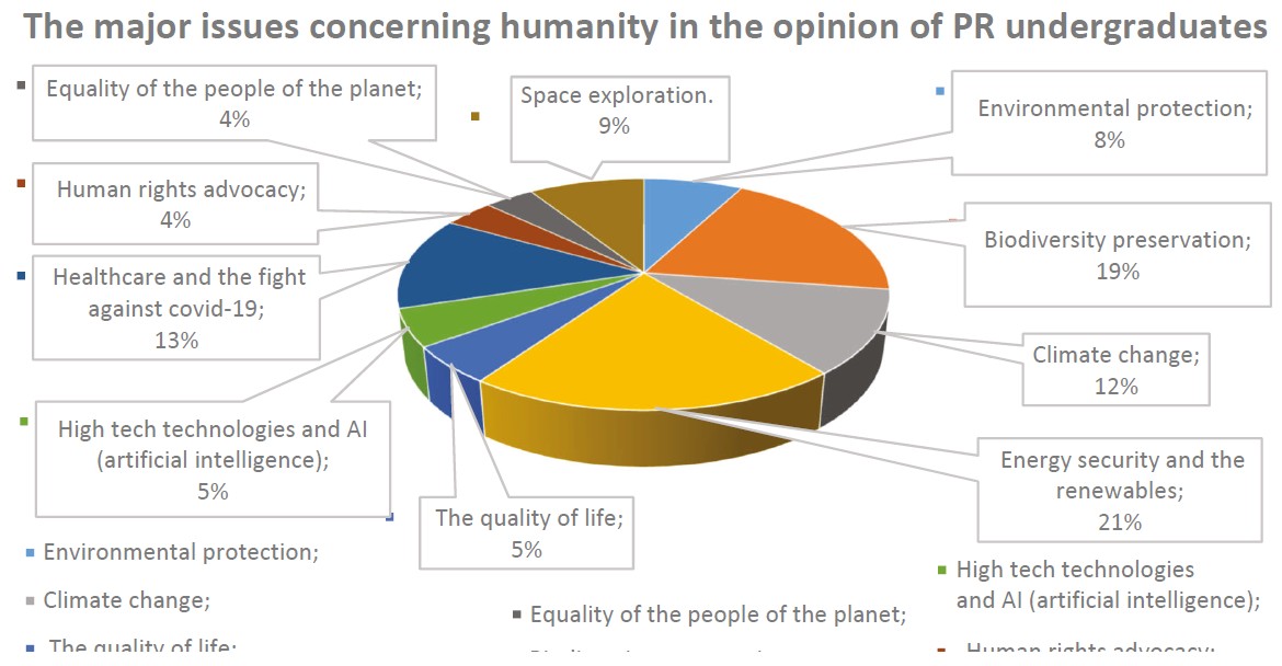 Table shows that the major concern of PR undergraduates is focused on the green economy and the environmental protection with special regard to biodiversity, as the planet and the living conditions are the most important aspects of the present day.