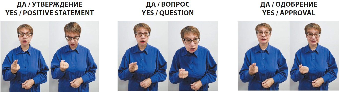 Рис. 5. Жесты ДА / УТВЕРЖДЕНИЕ, ДА / ВОПРОС, ДА / ОДОБРЕНИЕ