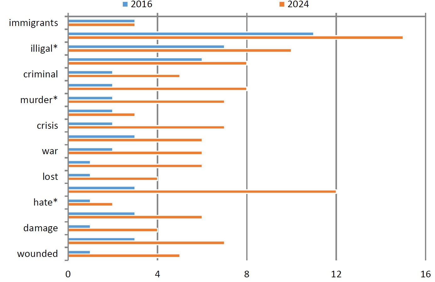 Figure 1. The increase in the frequency of weaponised language in 2024 compared to 2016