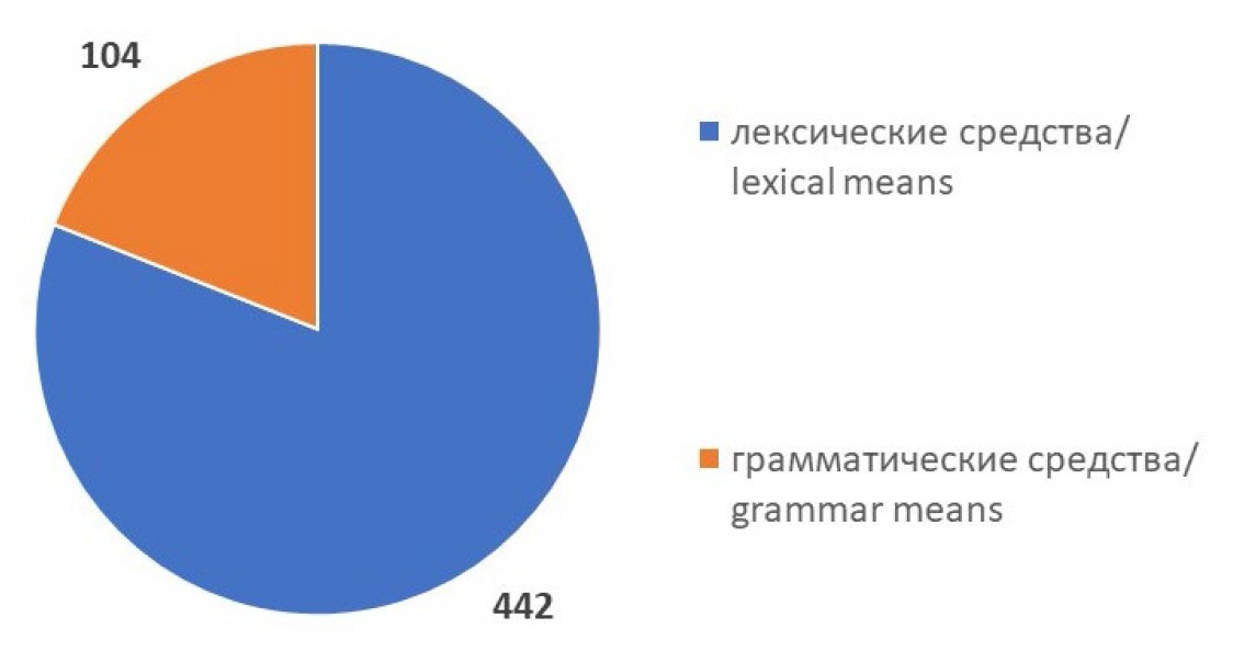 Рис. 1. Соотношение лексических и грамматических средств гендерной маркированности (по количеству единиц)