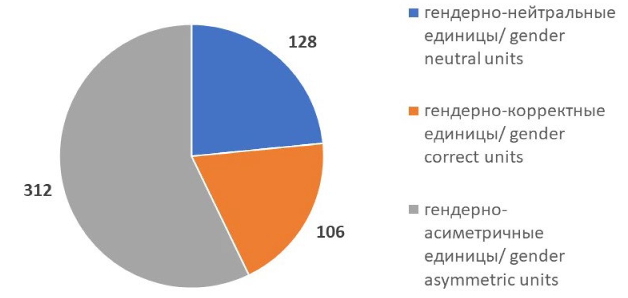 Все выявленные случаи гендерной маркированности мы разделили на три группы: гендерно-нейтральные, гендерно-корректные и гендерно-асимметричные единицы.