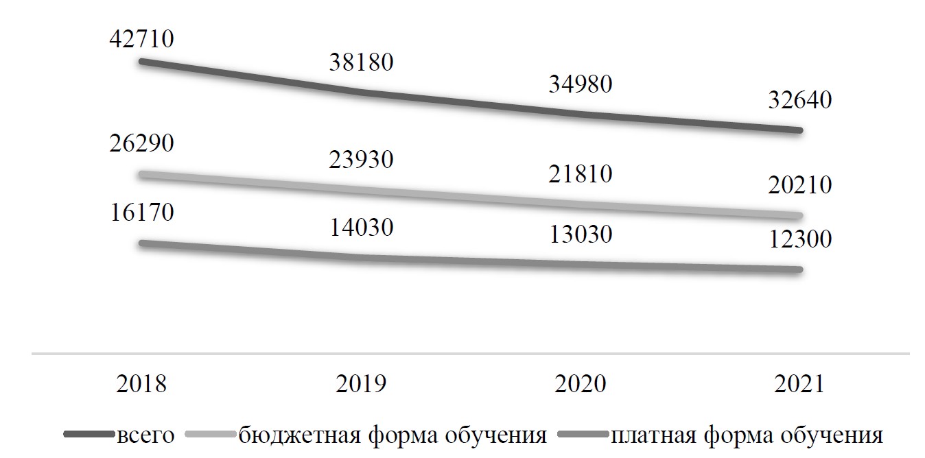 Рис. 2. Количество студентов одного цикла по специальности «Машиностроение» с 2018 по 2021 годы (чел.) [сост. по: 7]
