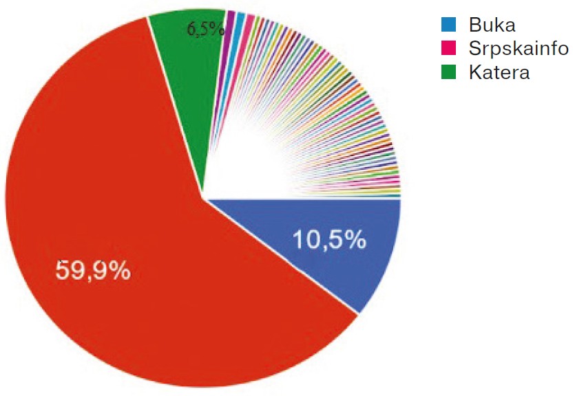 When asked the same question about Internet portals in case of emergency, students preferred the Srpskainfo portal (60 %), then comes the Buka portal (11 %) and the Katera portal (7 %), while all other (Faktor, BBC, Nezavisne novine, Novi standard, RT (Russia Today), CNN, RTRS (Public Broadcast System of the Republic of Srpska) and so on) were chosen by less than one respondent each (Fig. 3).
